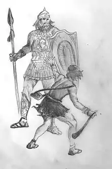 One major variation in the Samuel text is in 1 Samuel 17:4. While both the Septuagint and Josephus' writings attributed only four cubits and a span (possibly about 6 feet 6 inches (198 cm) to Goliath's height, the Masoretic Text recorded Goliath's height as six cubits (possibly about 9 feet 6 inches (290 cm). The Septuagint writes, "καὶ ἐξῆλθεν ἀνὴρ δυνατὸς ἐκ τῆς παρατάξεως τῶν ἀλλοφύλων Γολιὰθ ὄνομα αὐτῶν ἐκ Γέθ, ὕψος αὐτοῦ τεσσάρων πήχεων καὶ σπιθαμῆς·" The translation of this verse reads, "And there went forth a mighty man out of the army of the Philistines, Goliath, by name, out of Geth, his height [was] four cubits and a span.".[6] Furthermore, In Josephus' account of this story, he writes, "Now there came down a man out of the camp of the Philistines, whose name was Goliath, of the city of Gath, a man of vast bulk, for he was of four cubits and a span in tallness ... ."[7] However, because the Masoretic Text was written in the original Hebrew language and was considered to be an older version of the text, scholars used its translation for years, attributing to Goliath a height that surpassed even that of the tallest man ever recorded in medical history.[8]