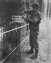US combat engineer setting a charge in World War II