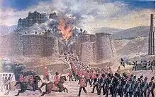 The fort of Ghazni which fell as a result of mining by a mixed contingent of the Bombay and Bengal Sappers during the First Afghan War on 23 July 1839.