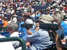 Baseball scouts using radar guns at a game at Turner Field in 2008