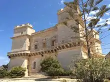 Selmun Palace (Maltese: Il-Palazz ta' Selmun), also known as Selmun Tower, is a villa on the Selmun Peninsula in Mellieħa, Malta. It was built in the 18th century by the Monte della Redenzione degli Schiavi, funded by the Monte di Pietà.[2] The palace was located on the grounds of a hotel until it closed in 2011.[3]