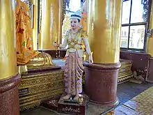 Maung Pe Khin (မောင်ဖေခင်) was born on 27 October 1812 in Mingun, near Ava, to the Crown Prince of Sagaing (who later became King Bagyidaw) and Hsinbyume. Miraculous events were reported at his birth and his body was said to bear the signs of a future world emperor. King Bodawpaya, his great-grandfather, conferred the title of Thatoe Minhla Shwetaung on him, and gave him the status of Prince of Nyaungyan. His mother died seven days after giving birth.[4] He is recorded as having been very popular with the people and called by them Setkya Min. After Burma's defeat in the First Anglo-Burmese War, it was hoped that he would succeed his father on the throne, drive out the British, and usher in an era of prosperity for Burma and Buddhism.