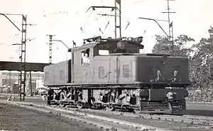 In 1936, the South African Railways built two Class ES centre-cab electric shunting locomotives with a Bo+Bo wheel arrangement, based on the Class 1E mainline electric locomotive. Between then and 1964, more were acquired until a total of 24 Class ES locomotives were eventually in service. Four more were built new for industry in 1952 and 1957.[1][2][3][4]