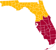 Southwest Florida, representing the state's southern Gulf Coast, has emerged as a directional vernacular region. Respondents from as far northwest as the Tampa Bay area identified their region as being in Southwest or Central Florida.[2] Confusing the matter further, the University of South Florida, named in part because of its status as the state's southernmost public university at the time of its 1957 founding, is located in Tampa.[3] Florida State Road 70 bisects approximately the southern third of Florida from west to east.