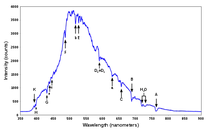 Strong spectral lines in the visible part of the electromagnetic spectrum often have a unique Fraunhofer line designation, such as K for a line at 393.366 nm emerging from singly-ionized calcium atom, Ca+, though some of the Fraunhofer "lines" are blends of multiple lines from several different species.