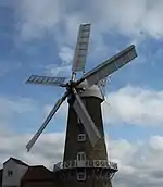 At the beginning of the First World War, a number of the town's trawlermen, together with some from Grimsby, were taken prisoner after their ships were sunk by German raiders in the North Sea. Their families did not know what had happened to them until late September 1914. The men were taken to Sennelager camp, then on to Ruhleben POW camp, where most remained until repatriated in 1918. A full report of their homecoming is in the Lincolnshire Standard newspaper, January 1918. During the war the port was used by hospital ships and some 4,000 sick or wounded troops passed through Boston.[17] The town was bombed by a Zeppelin on 2 September 1916, injuring three adults and killing a child.[18]