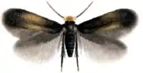 The wingspan is 4.2-5.2 mm. Adults are on wing from May to June and again in August in two generations.