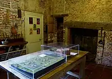 In the mid-1980s the building was squatted and used as a music venue and social centre, known as the Blue House (a decorated wall from this time is preserved within the current museum).[4] After the squatters were evicted the building's condition continued to decline. The Sutton House Society, originally known as the Save Sutton House Campaign, which was formed in March 1987, then began a campaign to rescue the building and open it to the public. Renovations were completed in 1991.[5] The building remains in use as a museum, as well as housing a café, an art gallery and a book and gift shop.[6] There is an active schools education programme at the house, together with other community programmes. Sutton House was short-listed for the 2004 Gulbenkian Prize. It is registered for the conduct of marriages.[7]