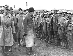 Gen.Sikorski, Gen.Klimecki and Winston Churchill, reviewing Polish troops in England.