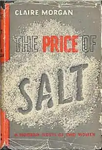 The Price of Salt (later republished under the title Carol) is a 1952 romance novel by Patricia Highsmith, first published under the pseudonym "Claire Morgan." Highsmith—known as a suspense writer based on her psychological thriller Strangers on a Train—used an alias as she did not want to be tagged as "a lesbian-book writer",[lower-alpha 1] and she also used her own life references for characters and occurrences in the story.