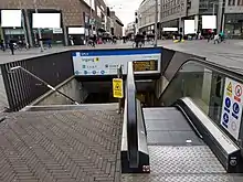 A tram stop, tram station, streetcar stop, or light rail station is a place designated for a tram, streetcar, or light rail vehicle to stop so passengers can board or alight it. Generally, tram stops share most characteristics of bus stops, but because trams operate on rails, they often include railway platforms, especially if stepless entries are provided for accessibility. However, trams may also be used with bus stop type flags and with mid-street pavements as platforms, in street running mode.
