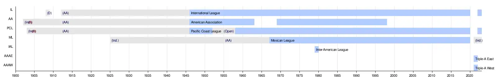 Timeline of AAA baseball leagues