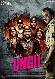 Ungli (transl. Finger) is a 2014 Indian vigilante crime thriller film directed by Rensil D'Silva and produced by Hiroo Yash Johar and Karan Johar under Dharma Productions. The film stars Emraan Hashmi, Randeep Hooda, Kangana Ranaut, Neha Dhupia, Angad Bedi, Neil Bhoopalam and Sanjay Dutt.[3] Mahesh Manjrekar, who collaborated with Dharma Productions for the first time, appears in a negative role. The film was released on 28 November 2014.