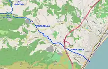 The river is formed at 170 m (560 ft) elevation by the confluence of two streams, Rio della Valle and Rio di Carpe, in the comune of Toirano. The river then flows through the Valle Varatella and crosses the centre of Toirano, where it receives from right the waters of rio Barescione, its main tributary. Heading south-east the Varatella reaches Borghetto Santo Spirito and ends its course in the Ligurian Sea, after being crossed by Autostrada A10, Genoa–Ventimiglia railway and Aurelia national road.