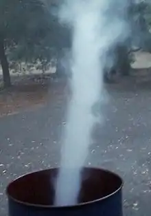 An Australian experimental atmospheric vortex using smoke as the tracer. Geoffrey Wickham.