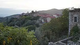 The village is built at an altitude of 750 m. Most of its houses are traditional structures made of stone, and two of them are fortified Venetian tower-houses (see picture on the right). The two central "squares" (Greek: πλατείες), the folklore museum, and the St. Nicholas Cathedral stand out among the village buildings. It has been declared a traditional settlement.
