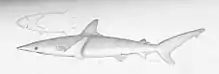 The whitenose shark (Nasolamia velox) is a species of shark of the family Carcharhinidae. The only member of the genus Nasolamia, it is found in the tropical waters of the eastern Pacific Ocean between latitudes 31° N and 18° S, between depths of 15 to 200 m. It can grow up to a length of 1.5 m. The whitenose shark is viviparous, with 5 young in a litter, and a birth size around 53 cm.[2]