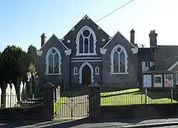 Lower Dicker is now a linear settlement along the A22, but in the early 19th century little existed at the "lower end of the Diccar ... in Hellingly Parish" other than a brickworks.[7] There were a few farms on the common land, though, and many of their occupants were Nonconformists rather than followers of the Church of England.[8] The latter was the Established Church in England, and various Acts of Parliament put restrictions on worship at places other than its own churches; but these were gradually relaxed, and by the 18th century many new Christian denominations had emerged, all categorised under the general name "Nonconformist".[9] Such denominations were particularly strong in rural parts of East Sussex,[8][9] and Calvinistic beliefs were especially popular. Meetings were commonly held in houses, barns or similar buildings, and groups were generally aligned to either the Independent movement or a Calvinistic interpretation of Baptist beliefs.[3] (The term "Strict Baptist" to describe such views developed in the 19th century "with the purpose of organising a range of Calvinistic Baptist causes within a denominational identity".)[10]